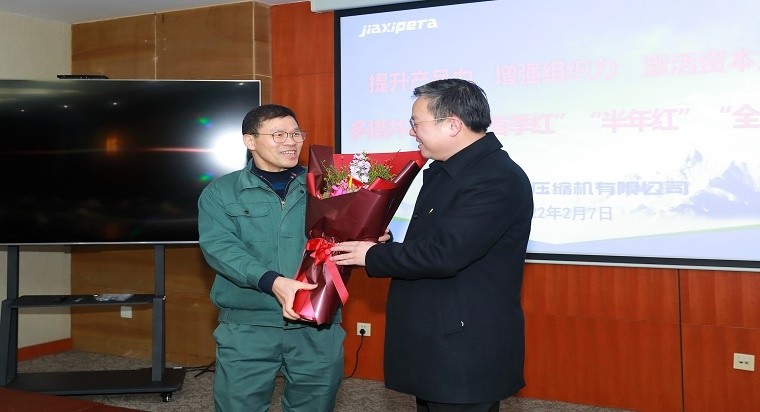 2月7日,新春節(jié)后上班第一天,南湖區(qū)委書記邵潘鋒到公司走訪慰問,開展“入企大走訪,全面穩(wěn)復(fù)工”活動,希望公司激發(fā)最大生產(chǎn)力,實現(xiàn)一季度工業(yè)經(jīng)濟(jì)“開門穩(wěn)、開門好”,在高質(zhì)量發(fā)展中行穩(wěn)致遠(yuǎn),給公司黨委書記、總經(jīng)理張勤建送上獻(xiàn)花。