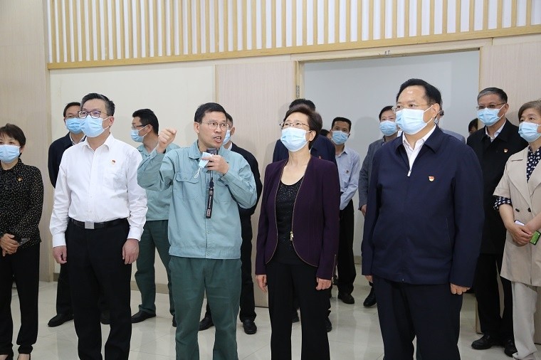 5月19日,浙江省人大常委會黨組書記、副主任梁黎明一行來公司實地調研,并看望全國人大代表、公司商用開發部部長周慧博士。省人大常委會秘書長魯俊,嘉興市領導張兵、高玲慧、張仁貴、敖考權,南湖區領導邵潘鋒、吳健陪同,嘉實集團總經理姜銘恩參加接待,公司黨委書記、總經理張勤建邊陪同參觀數據控制中心和生產現場,邊匯報公司生產經營發展情況。