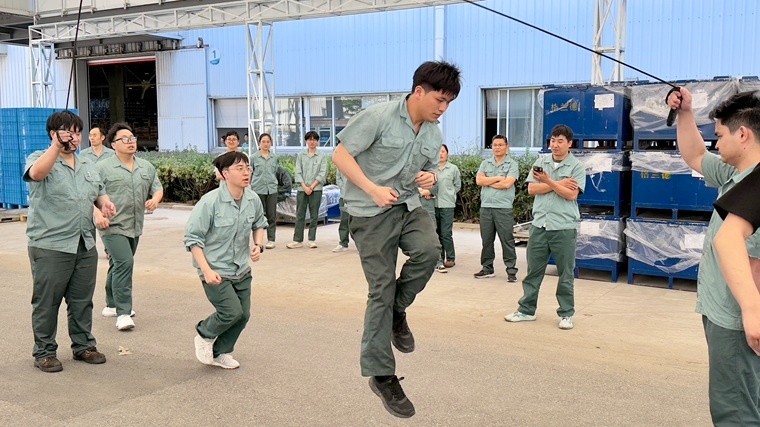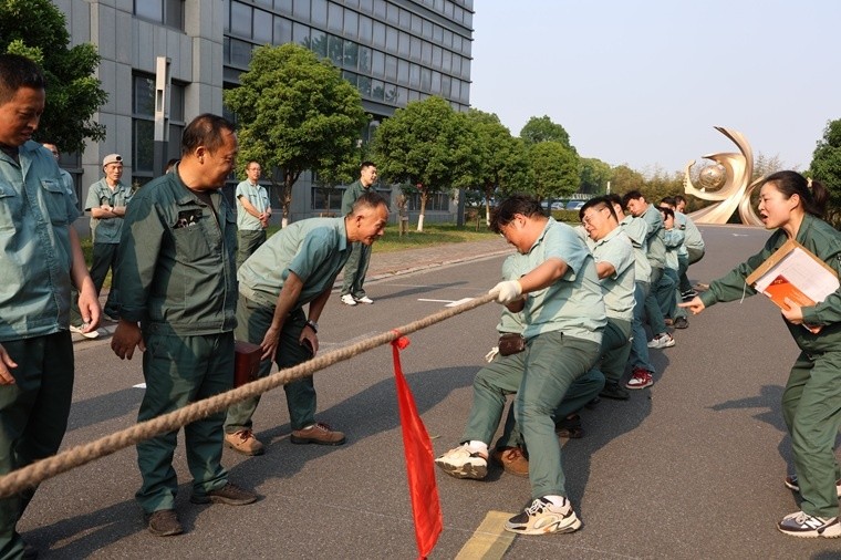 本次運動會的主題是“紅色五月 繩彩飛揚 力拔山河”,以分工會為單位組隊參賽,有18支隊伍參加拔河比賽,有16支隊伍參加跳繩比賽,“五一”前夕,小組賽分別在公司嘉興一廠、二廠和三廠舉行。活動現(xiàn)場,拔河參賽隊員緊握繩索,眼神堅定,齊聲吶喊發(fā)力,比賽過程高潮迭起,現(xiàn)場觀眾的加油助威聲震耳欲聾。跳長繩選手們有序穿梭在長繩構(gòu)筑的優(yōu)美弧線中,輕盈的腳步,躍動的身體,流暢的配合,博得了觀眾的陣陣掌聲。